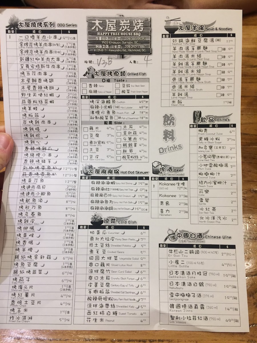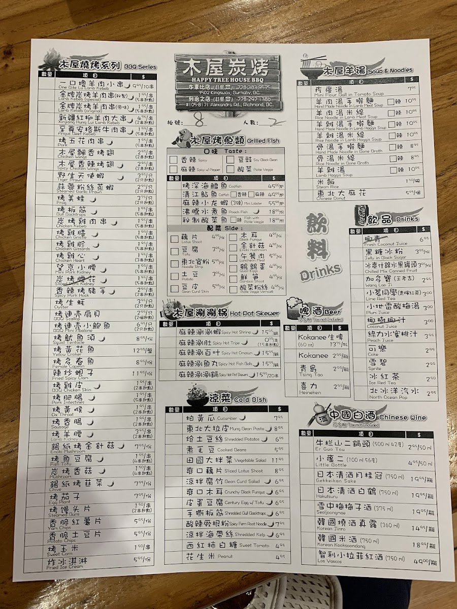 Happy Tree House BBQ Kingsway木屋炭烤(溫哥華店) Menu